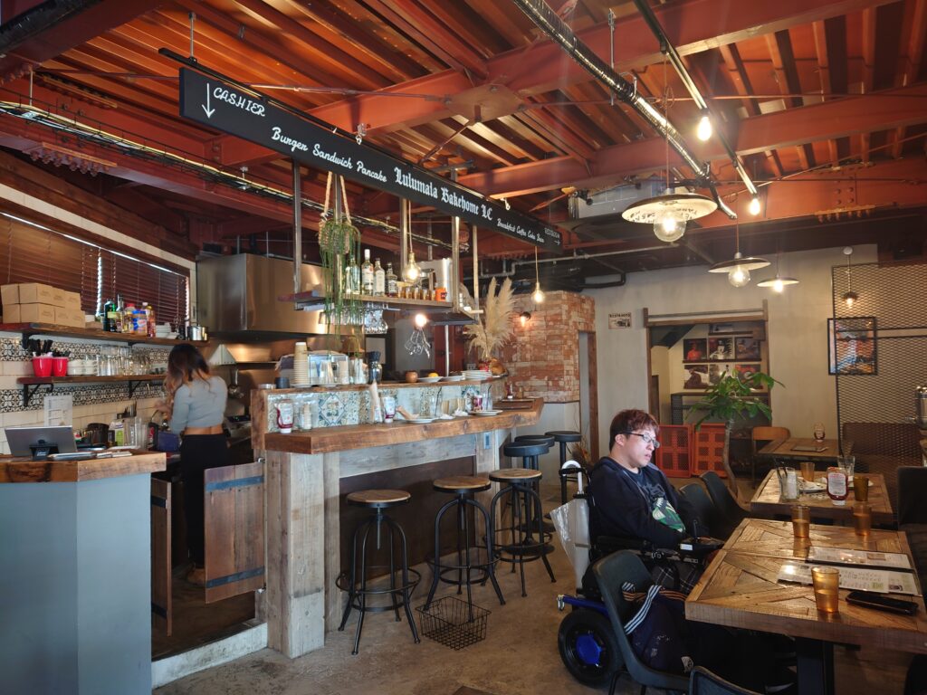 瀬田の学園通り沿いに面し、一歩中に入るとアメリカンなテイストのお洒落な店内。ハンバーガーの移動販売でファンを作ってきた店主の木戸さんが念願のショップをオープン。ワンちゃんと一緒に座れるテラス席は、学園通りを忘れる解放感が感じられる。介助犬ももちろんOK。入店するのに少しの段差があるものの、電動車いすで入店可能(不安な方はお手伝い頂けるので声掛けを)。ビーフ100%のパテはもちろん、パンにもこだわりをもっている木戸さん。ハード系パンはお店でご自身で焼かれ、バンズも木戸さん自らレシピを考えられたこだわり。そのパンと一緒にいただくハンバーガーはベースメニューが20種、トッピングの9種あるので、組み合わせ次第で自分だけの好みのハンバーガーを見つけられる。要望に合わせて切ってから提供なども可。ご相談いただければ臨機応変にご対応します!と木戸さんの嬉しいお声も。