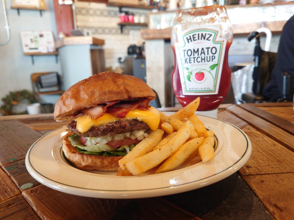 瀬田の学園通り沿いに面し、一歩中に入るとアメリカンなテイストのお洒落な店内。ハンバーガーの移動販売でファンを作ってきた店主の木戸さんが念願のショップをオープン。ワンちゃんと一緒に座れるテラス席は、学園通りを忘れる解放感が感じられる。介助犬ももちろんOK。入店するのに少しの段差があるものの、電動車いすで入店可能(不安な方はお手伝い頂けるので声掛けを)。ビーフ100%のパテはもちろん、パンにもこだわりをもっている木戸さん。ハード系パンはお店でご自身で焼かれ、バンズも木戸さん自らレシピを考えられたこだわり。そのパンと一緒にいただくハンバーガーはベースメニューが20種、トッピングの9種あるので、組み合わせ次第で自分だけの好みのハンバーガーを見つけられる。要望に合わせて切ってから提供なども可。ご相談いただければ臨機応変にご対応します!と木戸さんの嬉しいお声も。